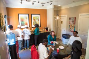 After the walkthrough was finished, we headed to the leasing office and got lunch for everyone- catered by Moe’s! The entire Madison Druid Hills staff was invited, as well as our crew! It was great to have everyone together for the “last supper” of sorts.