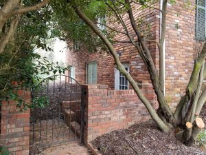 As you walk around the side, there is a beautiful gate which stands out more due to the subtle tones of the lime wash. The whole area has a new life thanks so this finish !