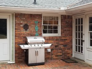 And of course the back patio is looking much more inviting and that pop of color really stands out on against the lime wash brick!