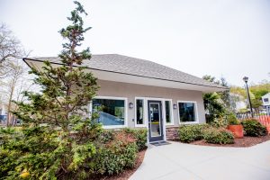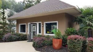 The leasing office is often the first impression you get on the property when you’re looking to lease and we LOVE the arched entrance way and how it wonderfully it bloomed with the new paint scheme .