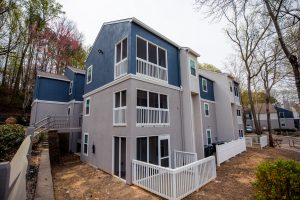Here you can see the back of the leasing office- such beautiful architecture now showed off with a gorgeous paint job!